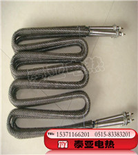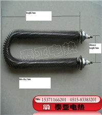 翅片式電熱管采用優(yōu)質(zhì)不銹鋼、改性氧化鏷粉、高電阻電熱合金絲、不銹鋼散熱片等材料,通過先進的生產(chǎn)設(shè)備和工藝制作而成,并進行了嚴格的質(zhì)量管理,該系列產(chǎn)品可以安裝在吹風(fēng)管道中或其它靜止、流動空氣的加熱場合?!〕崞诫娂訜峁?,是在普通元件表面纏繞金屬散熱片,與普通元件相比散熱面積擴大了2~3倍,即翅片元件所允許的表面功率負荷是普通元件的3~4倍。由于元件的長度縮短,使得本身的熱損失減小,在相同的功率條件下,具有升溫快、發(fā)熱均勻、散熱性能好、熱效率高、使用壽命長、加熱裝置體積小,成本低等優(yōu)點。根據(jù)用戶要求進行了合理的設(shè)計,便于安裝?!‘a(chǎn)品在機械制造、汽車、紡織、食品、家電等行業(yè),尤其在空調(diào)器風(fēng)幕行業(yè)得到廣泛應(yīng)用。