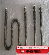 翅片式電熱管采用優(yōu)質(zhì)不銹鋼、改性氧化鏷粉、高電阻電熱合金絲、不銹鋼散熱片等材料,通過先進(jìn)的生產(chǎn)設(shè)備和工藝制作而成,并進(jìn)行了嚴(yán)格的質(zhì)量管理,該系列產(chǎn)品可以安裝在吹風(fēng)管道中或其它靜止、流動空氣的加熱場合?!〕崞诫娂訜峁?,是在普通元件表面纏繞金屬散熱片,與普通元件相比散熱面積擴大了2~3倍,即翅片元件所允許的表面功率負(fù)荷是普通元件的3~4倍。由于元件的長度縮短,使得本身的熱損失減小,在相同的功率條件下,具有升溫快、發(fā)熱均勻、散熱性能好、熱效率高、使用壽命長、加熱裝置體積小,成本低等優(yōu)點。根據(jù)用戶要求進(jìn)行了合理的設(shè)計,便于安裝?!‘a(chǎn)品在機械制造、汽車、紡織、食品、家電等行業(yè),尤其在空調(diào)器風(fēng)幕行業(yè)得到廣泛應(yīng)用。